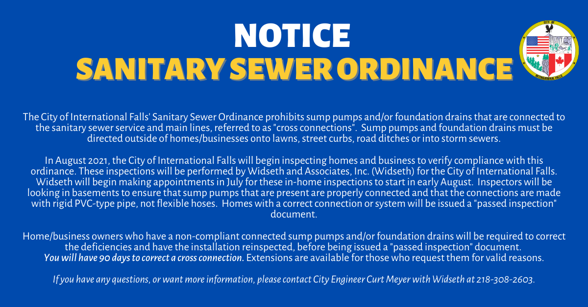 Notice of Sump Pump Inspections City of International Falls, Minnesota
